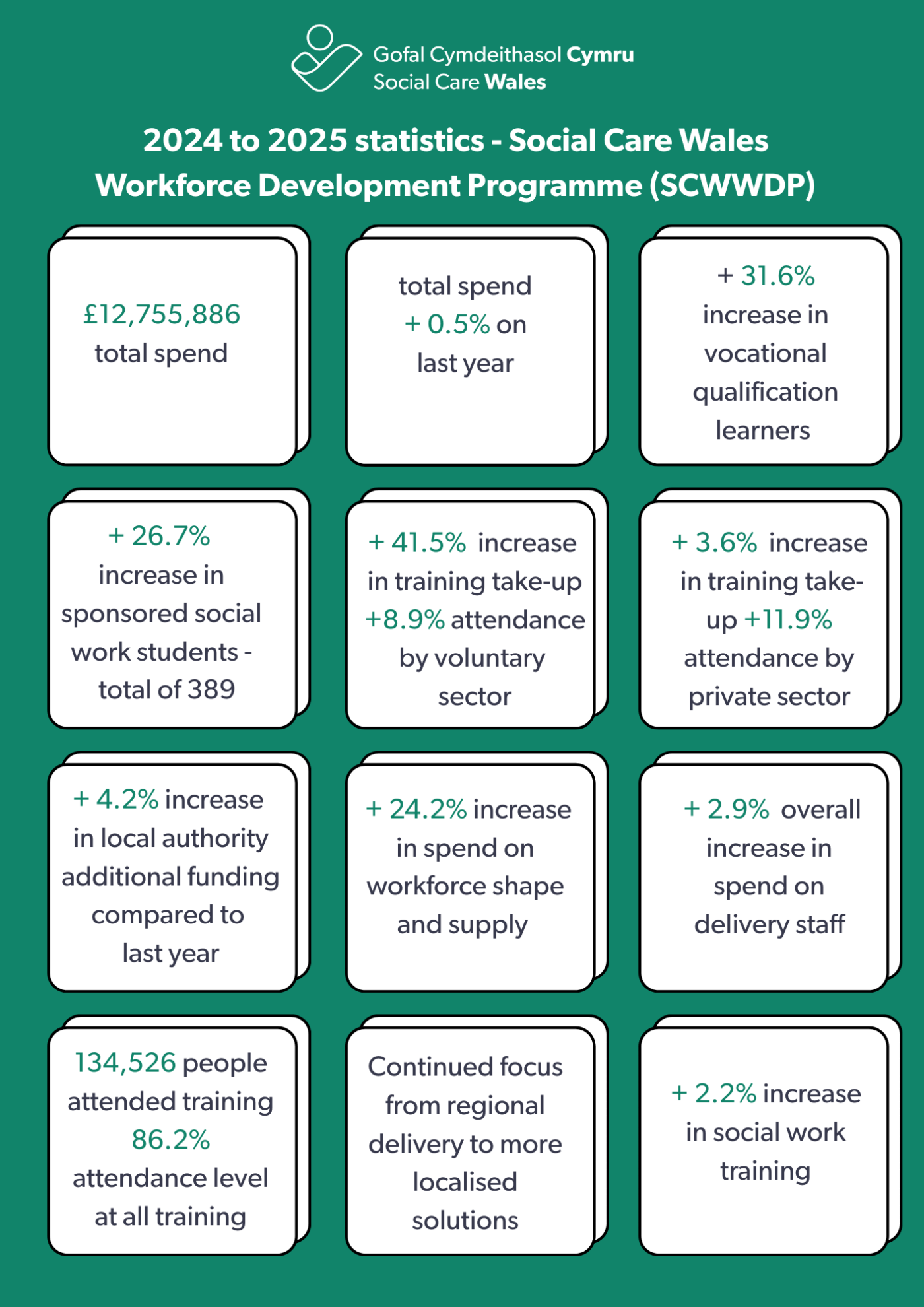 - supported 693 people on social work qualifying training, an increase of 2.2 per cent on last year